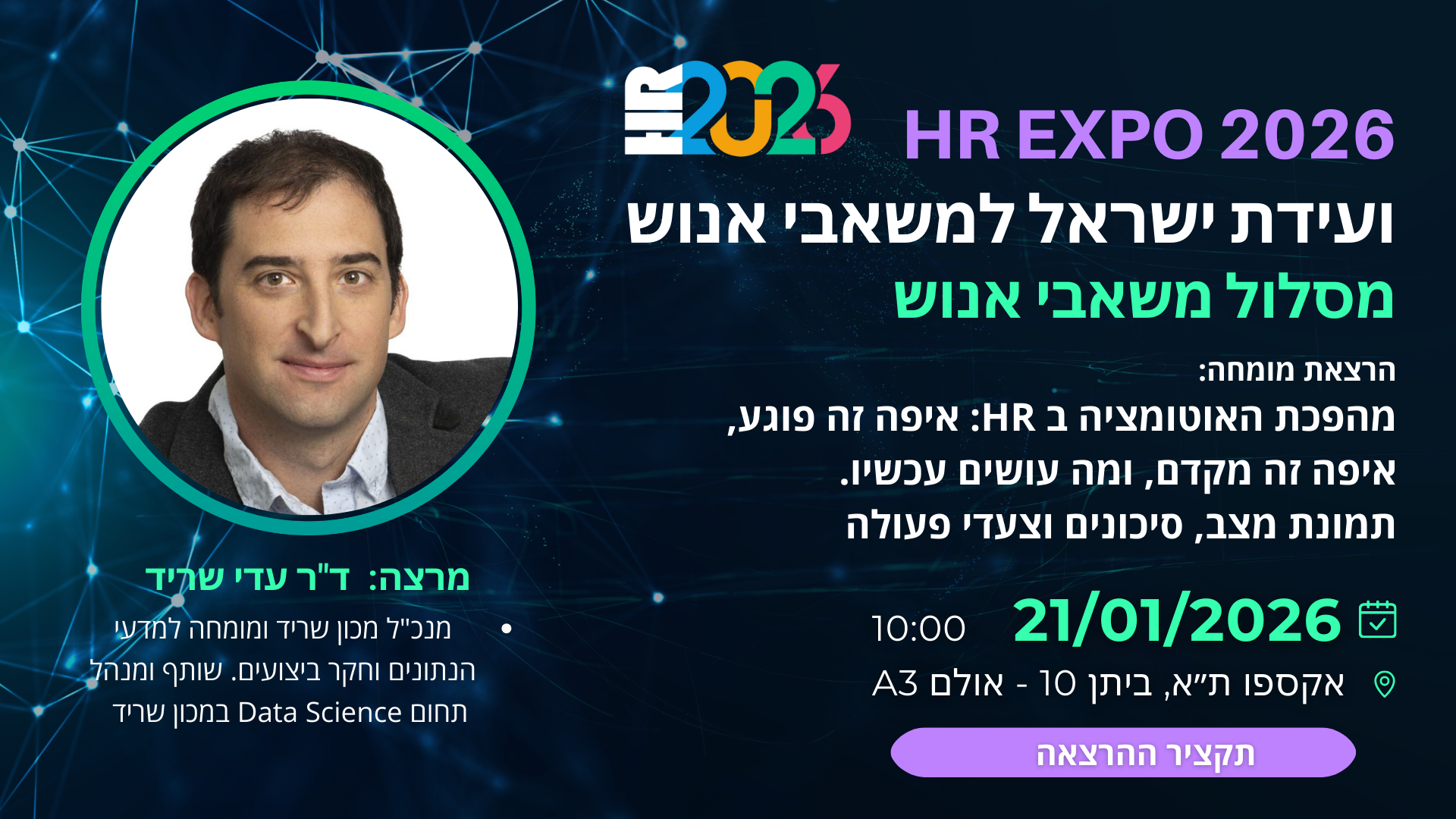 10:00 | מחקר מהפכת האוטומציה ב HR: איפה זה פוגע, איפה זה מקדם, ומה עושים עכשיו