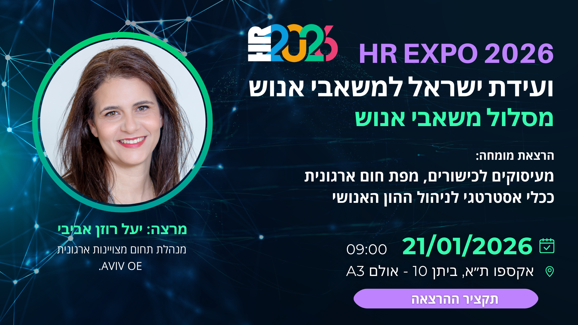 זה היום שבו אתם עוצרים רגע מהיום יום, מסתכלים קדימה ל HR של 2026 וחוזרים לארגון עם שפה, כיוון וכלים להוביל את השינוי במקום רק להגיב אליו.